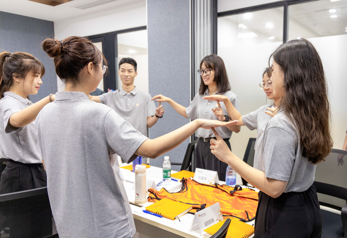 破冰環(huán)節(jié),由學員組建的小組進行團隊展示,從隊形、口號、繪圖三個維度進行展示,充分體現了他們對即將在華潤開啟的職場生活的熱情與沖勁。素質拓展環(huán)節(jié),不僅僅考驗了他們的反應能力、競爭意識,更是一次團結互助、合作共贏的新體驗。培訓還設置了翻轉課堂環(huán)節(jié),通過重新建構學習流程,使學員逐漸成為學習的主角,化被動為主動。