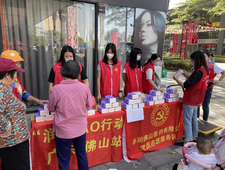 10月21日上午9點,華潤佛山醫(yī)藥有限公司在桂城街道金域藍(lán)灣北廣場設(shè)攤開展用藥安全知識宣傳活動?,F(xiàn)場指導(dǎo)小區(qū)居民辨別假藥劣藥和如何看包裝上的產(chǎn)品批號、生產(chǎn)日期和有效期等知識,并用紙巾和小區(qū)居民兌換他們家里的過期藥品,吸引了許多小區(qū)居民參與,受到社區(qū)群眾的歡迎。最后,將過期藥品投放進(jìn)小區(qū)固定的回收箱,并由尖東社區(qū)工作人員進(jìn)行分類記錄,確保做到安全綠色回收。