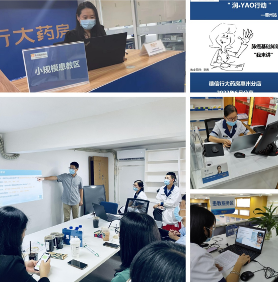該活動(dòng)于2022年5-10月期間分四期開(kāi)展,主要在廣東德信行惠州鵝嶺店內(nèi)進(jìn)行現(xiàn)場(chǎng)或者線上直播方式進(jìn)行?;冀袒顒?dòng)主題圍繞“腫瘤疾病用藥健康指導(dǎo)”,“癌癥健康教育”,“腫瘤患者營(yíng)養(yǎng)管理”及有關(guān)化療后的健康教育為講課內(nèi)容。其中,第一期現(xiàn)場(chǎng)活動(dòng)主要由合作伙伴西安楊森許健龍老師講解銀屑病的病理知識(shí),用藥指導(dǎo),及醫(yī)保報(bào)銷的注意事項(xiàng);第二、三、四期以線上直播方式進(jìn)行,由廣東德信行惠州鵝嶺店店長(zhǎng)、執(zhí)業(yè)藥師主講關(guān)于肺癌的基礎(chǔ)知識(shí),配合治療用藥、健康營(yíng)養(yǎng)管理等內(nèi)容。