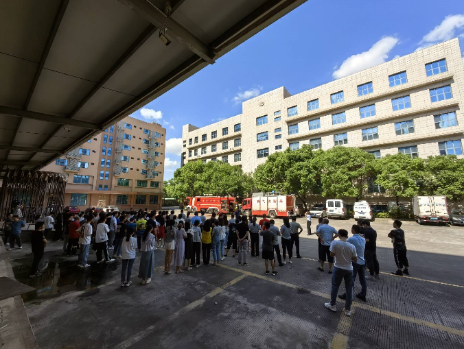 當天下午,緊急警報一拉響,辦公區(qū)和物流倉庫全體人員按照逃生指示標志及疏散路線,迅速撤離現(xiàn)場并有序到達指定集合點,各部門負責人按實匯報疏散情況。