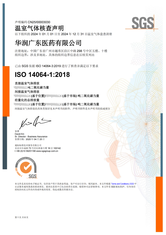華潤廣東醫(yī)藥成功完成溫室氣體盤查并獲權威核查證書