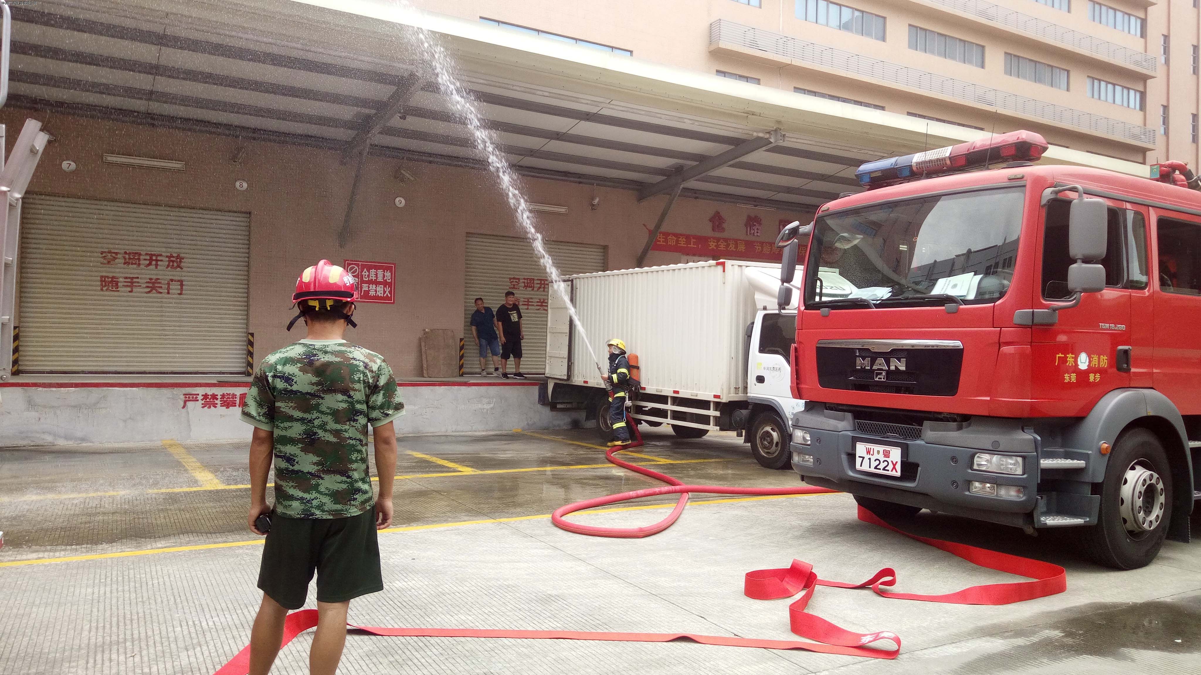 本次演練主要是模擬物流管理中心一樓發(fā)生較大“火情”,一名“受困”人員馬上向企業(yè)消防安全應(yīng)急工作小組求救,并撥打火警“119”求助。接到“火情”后,消防安全應(yīng)急工作小組人員馬上換上防火服裝帶著滅火器迅速趕到起火處,組織人員疏散,并利用最靠近火場的消防栓展開初期撲救。接警后,寮步消防大隊派出三輛消防車迅速趕到現(xiàn)場展開滅火救援,在消防大隊消防員和華潤東莞醫(yī)藥消防安全應(yīng)急工作小組成員的合力下,成功救出“受困”人員并轉(zhuǎn)移至安全的地方,徹底撲滅火源。
