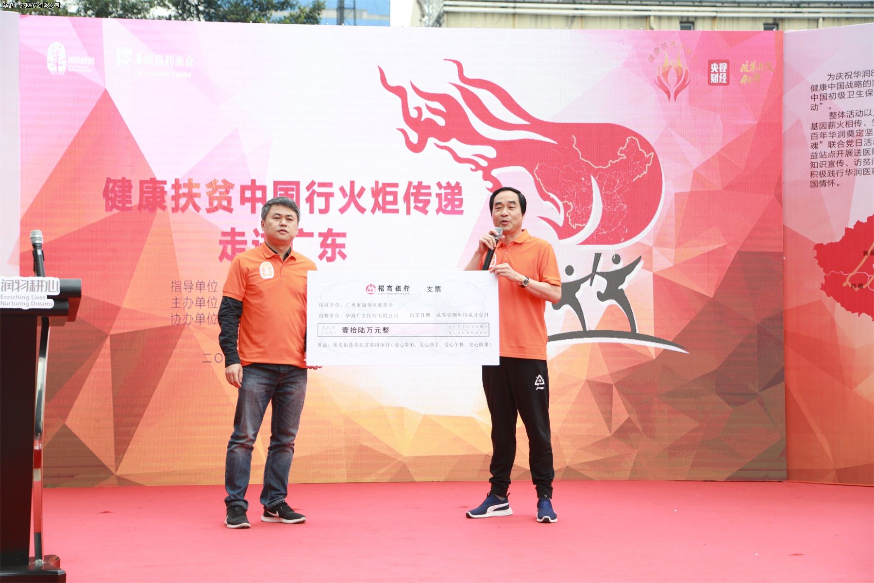 2018年適逢改革開放40周年盛世,為慶祝華潤 80 周年華誕,深入貫徹黨的十九大精神,助力健康中國戰(zhàn)略,華潤醫(yī)藥商業(yè)集團黨委與國家衛(wèi)生健康委聯(lián)合開展“健康扶貧中國行系列活動”,至今已經在全國27個省市開展“潤•Yao行動”社會責任項目,積極履行央企社會責任。今天寓意著華潤紅色基因薪火相傳、生生不息走進新時代的紅色火炬終于來到了廣東。