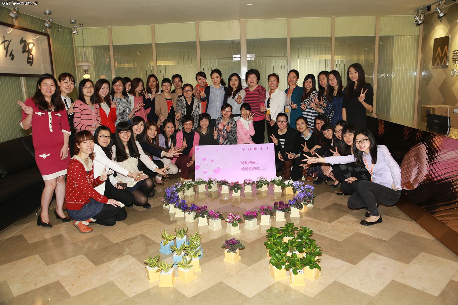 2013年3月8日一早,女同事在上班的路上收到節(jié)日問候的短信,踏入公司大門,一張淡紫色的節(jié)日賀卡——“特別的愛,給特別的你”用小盆栽堆砌而成的愛心與“3•8”字樣隨即映入眼簾,動人不已。這一抹青綠與清新溫暖著同事的心,盆栽可以在日常繁忙的工作中陪伴女同胞,讓她們更加健康、快樂!一張張可愛迷人的笑臉,一句句真摯感人的祝福,充溢著公司的每一個角落。大合照上,每一位女同胞甜蜜的笑容,傳達(dá)出心中的幸福滿足與歸屬。在這個溫暖的大家庭里,我們快樂,我們幸福!