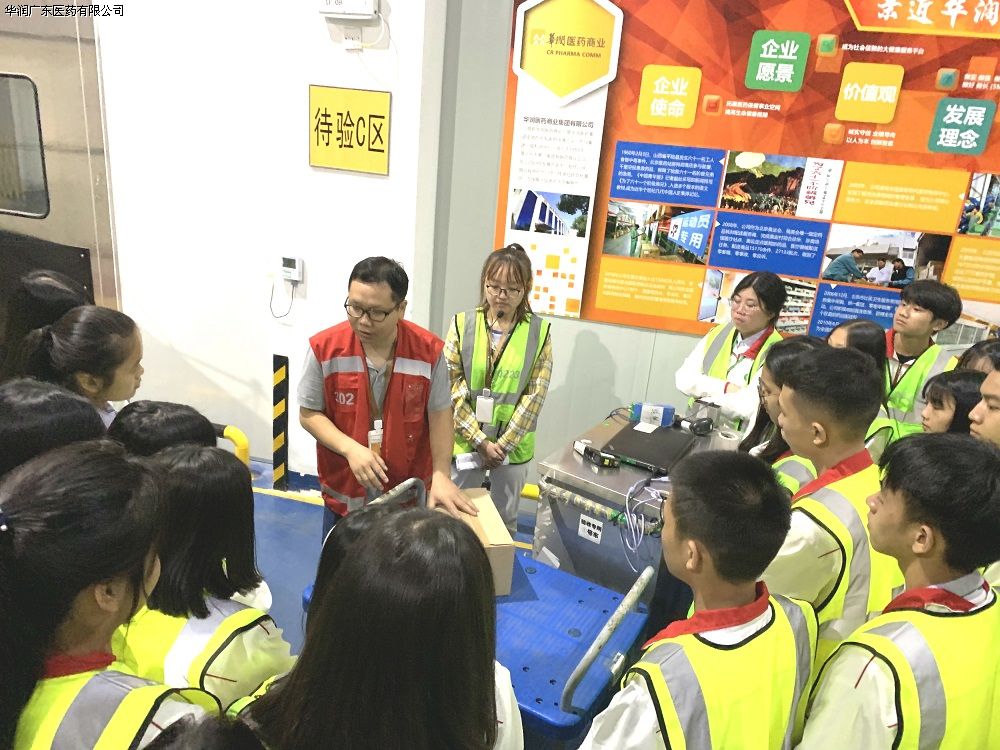歡迎儀式上,5分鐘的《守護(hù)藥品質(zhì)量安全的衛(wèi)士》小短片,以華潤(rùn)醫(yī)藥卡通形象代言人“潤(rùn)小藥”的視角,為同學(xué)們生動(dòng)地介紹了華潤(rùn)集團(tuán)的發(fā)展歷程以及積極履行社會(huì)責(zé)任的故事。隨后開放日工作人員為參觀師生介紹了廣州物流中心的基本情況及參觀安全須知后,“參觀之旅”正式開啟!