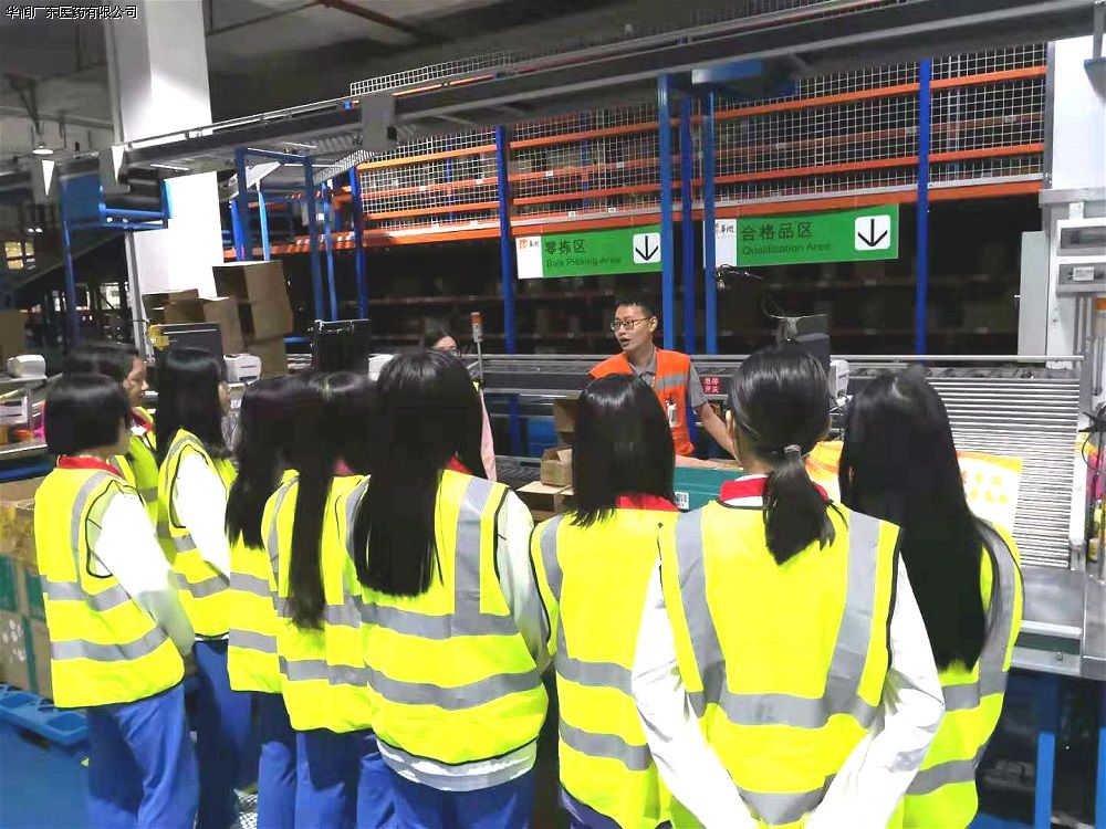 跟隨講解員的腳步,同學(xué)們實(shí)地查看物流中心內(nèi)部作業(yè)現(xiàn)場(chǎng),依次了解了收貨驗(yàn)貨、拆零分揀及理貨出庫(kù)作業(yè)流程。當(dāng)?shù)弥锪髦行牟捎萌A潤(rùn)集團(tuán)自主研發(fā)的醫(yī)藥倉(cāng)儲(chǔ)管理系統(tǒng)(WMS),實(shí)現(xiàn)了藥品入庫(kù)、藥品揀選、配送的自動(dòng)化、信息化操作后,同學(xué)們紛紛表示贊嘆?!巴ㄟ^(guò)今天的參觀,我身臨其境地感知和體驗(yàn),‘信息傳遞快捷,自動(dòng)化揀選速度快,大大減少藥品的庫(kù)存,縮短藥品的在庫(kù)時(shí)間,進(jìn)而保證藥品質(zhì)量’,這些原本書上的知識(shí)不再是靜止和呆板的,都‘鮮活’了起來(lái)”,一位同學(xué)說(shuō)道。