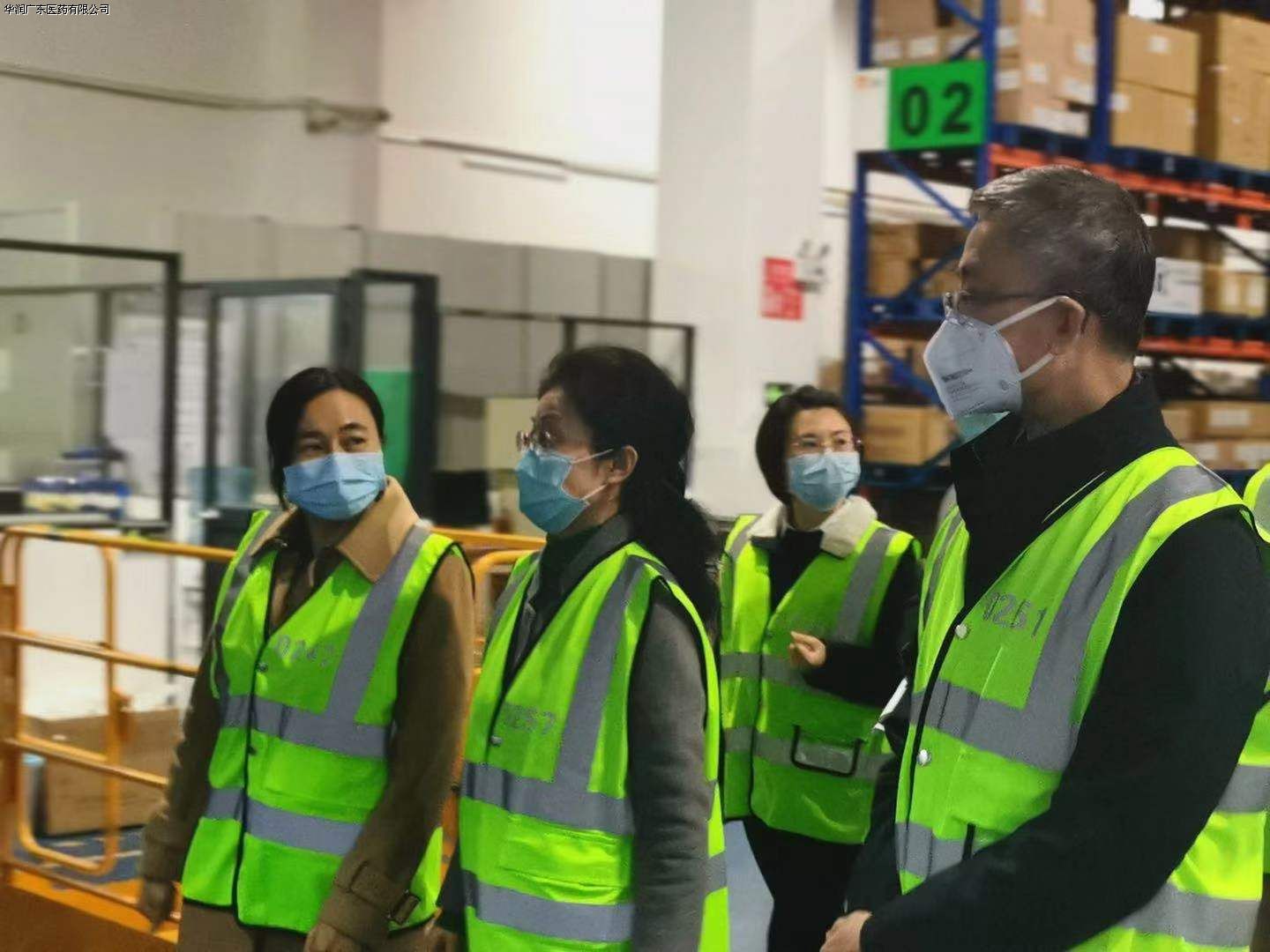1月29日(正月初五),廣東省藥品監(jiān)管局領導一行四人到華潤廣東醫(yī)藥有限公司花都物流中心現(xiàn)場了解疫情應急藥械產(chǎn)品的質(zhì)量管理和儲備情況,并對奮戰(zhàn)在抗擊疫情一線的華潤廣東員工表示慰問和感謝。公司常務副總經(jīng)理霍佩瓊與環(huán)境健康安全與質(zhì)量管理部、物流管理部部分員工陪同。
