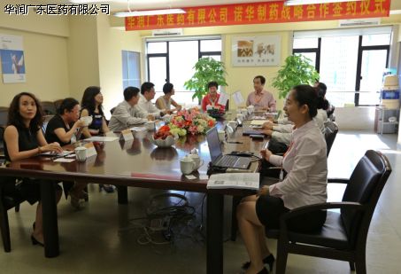 2013年6月27日下午,我司與諾華制藥有限公司在大會議室舉行了隆重的合作簽約儀式。諾華制藥中國副總裁邊建蘋女士、華潤廣東醫(yī)藥總經(jīng)理陳威廉先生以及雙方公司代表共20人出席了當(dāng)天的簽約儀式。諾華制藥廣州公司商務(wù)負責(zé)人曾秀明主持了本次簽約儀式。
