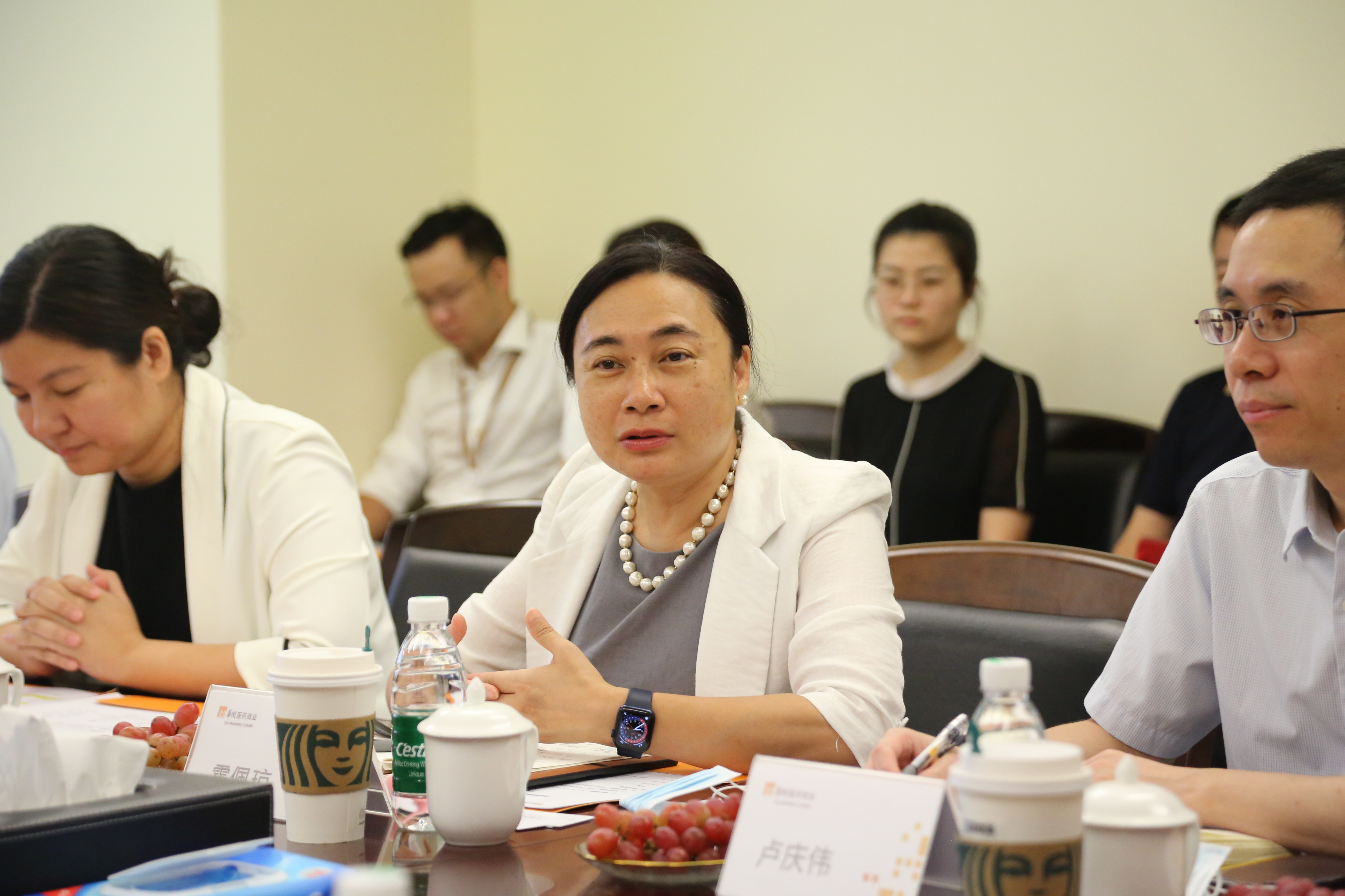 華潤廣東醫(yī)藥總經(jīng)理霍佩瓊、管理團(tuán)隊(duì)及相關(guān)業(yè)務(wù)負(fù)責(zé)人共同參與。雙方在友好氛圍下對(duì)雙方企業(yè)運(yùn)營、商業(yè)創(chuàng)新模式及大灣區(qū)創(chuàng)新項(xiàng)目等內(nèi)容展開深入探討。