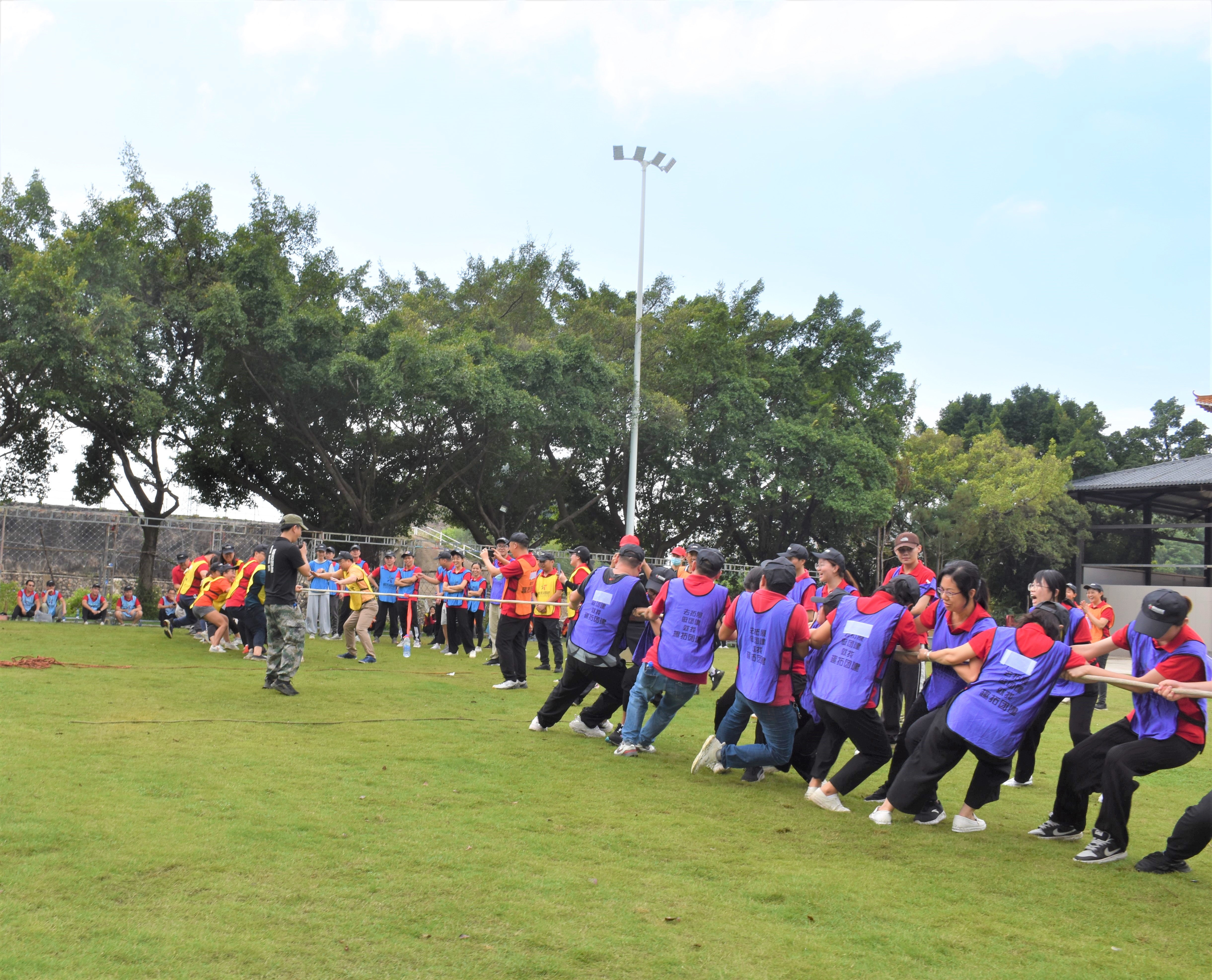 首先進(jìn)行的是“飛盤(pán)運(yùn)動(dòng)”,各隊(duì)根據(jù)防守輪換的方式,閃躲對(duì)方飛盤(pán),存留人數(shù)最多的隊(duì)伍獲勝,既鍛煉了隊(duì)員的戰(zhàn)術(shù)部署及隨機(jī)應(yīng)變能力,又體現(xiàn)了團(tuán)隊(duì)協(xié)同作戰(zhàn)、統(tǒng)一對(duì)外的精神。接著是跑男系列游戲 “撕名牌混戰(zhàn)”。游戲前的刺激氛圍,游戲中的同心協(xié)力,聚焦目標(biāo),消除了彼此隔閡,助燃斗志。最后隆重登場(chǎng)的是“拔河大賽”,為了團(tuán)隊(duì)的榮譽(yù),大家都擰成一股繩,蓄勢(shì)待發(fā),奮力一搏。