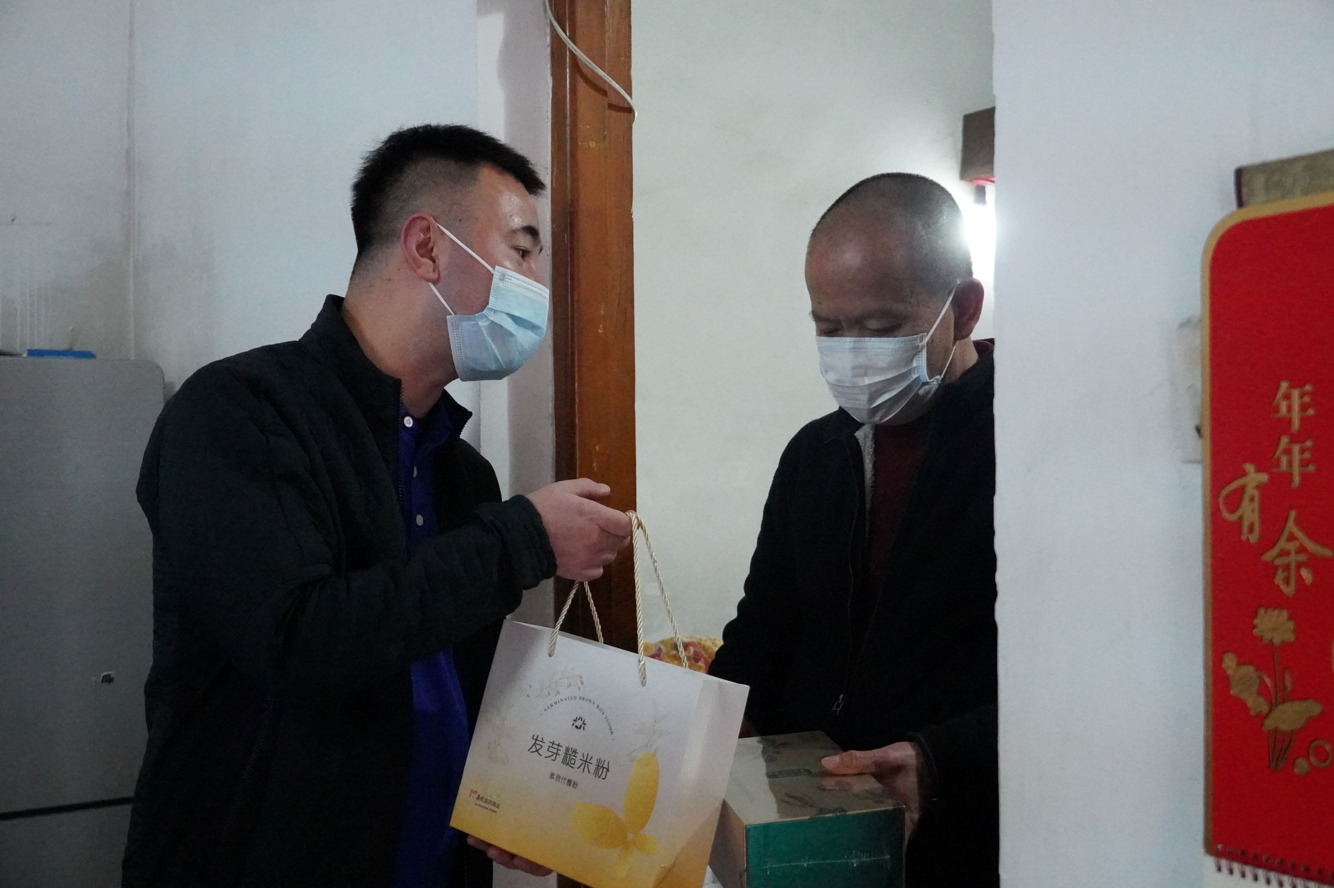 廣東德信行志愿者貼心地考慮到慢病患者的飲食顧忌,故專門挑選由24種優(yōu)質(zhì)天然原料制成的發(fā)芽糙米粉作為新年賀禮,遞送給慢病老人。禮品雖輕,但其中心意是沉甸甸的。志愿者期望發(fā)芽糙米粉能起到降血糖、修復(fù)腸道屏障的作用,幫助慢病患者在新年換個(gè)精神煥發(fā)的新面貌。呵護(hù)醫(yī)療養(yǎng)老機(jī)構(gòu)志愿者亦向慢病患者送上新年祝福與福春,寓意新的一年福氣臨門。