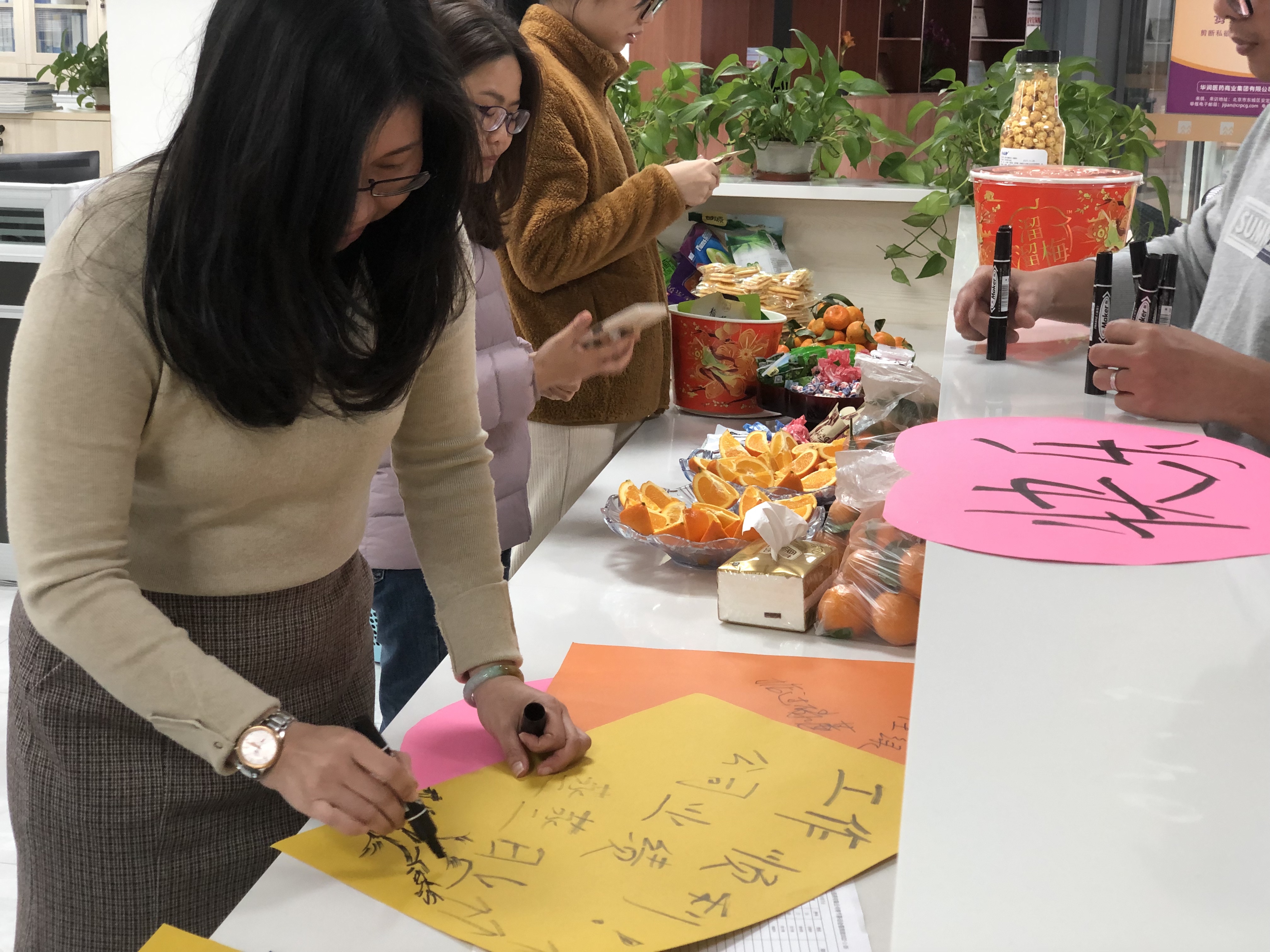 下午15點(diǎn),由工會提前準(zhǔn)備好茶話會的水果零食等,大家準(zhǔn)時在活動地點(diǎn)集合。雖然天氣寒冷,但是大家熱情高漲,紛紛提筆寫下了新春的祝福和寄望。然后一起品嘗著美食互相交談,到處都是笑語盈盈,充滿著歡樂和溫馨。最后本次活動在大家的歡聲笑語中圓滿結(jié)束。