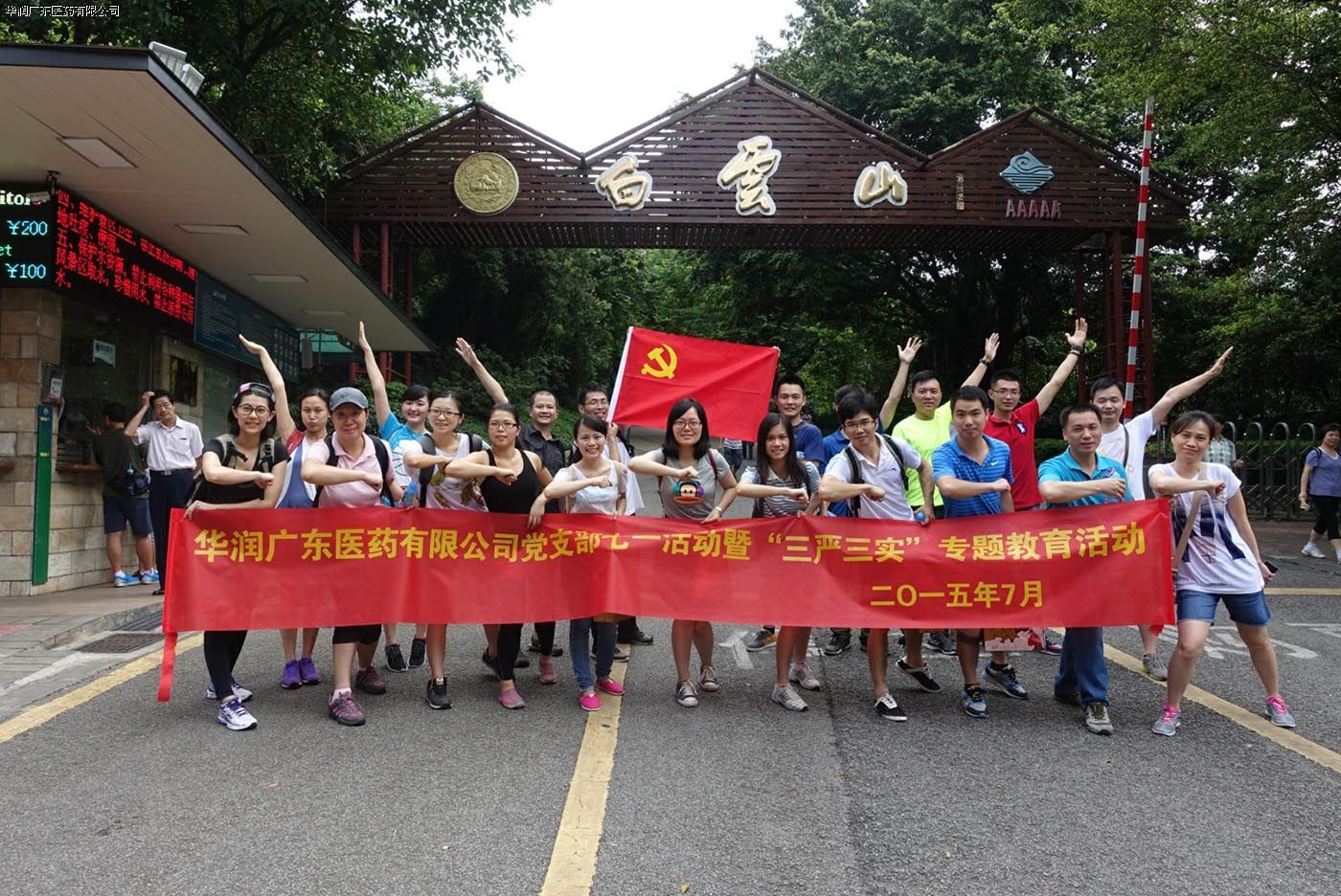 2015年7月11日,華潤廣東醫(yī)藥有限公司黨支部組織公司全體黨員到廣州市白云山風(fēng)景區(qū)進(jìn)行主題為“修身養(yǎng)性•登高白云”的黨日活動,以此紀(jì)念中國共產(chǎn)黨建黨94周年,同時正式拉開我司“三嚴(yán)三實(shí)”專題教育活動的序幕。