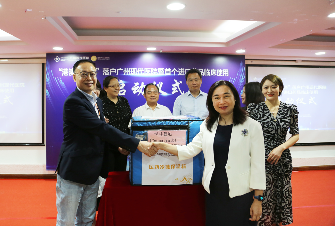 “港澳藥械通”落戶廣州現代醫(yī)院暨首個進口藥品臨床使用啟動儀式舉辦。首批進口抗癌新藥“卡馬替尼”由華潤廣東醫(yī)藥有限公司(以下簡稱:“華潤廣東醫(yī)藥”)完成藥品采購、進口、配送全過程后,正式交付給醫(yī)院用作臨床使用。