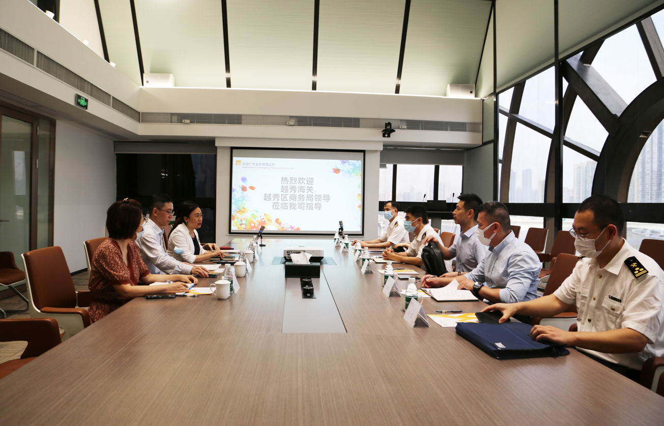2022年5月26日,越秀海關(guān)關(guān)長梁惠其、副關(guān)長王磊、越秀區(qū)商務(wù)局余偉副局長、四級調(diào)研員彭文超一行6位領(lǐng)導(dǎo)到訪華潤廣東醫(yī)藥有限公司(以下簡稱:華潤廣東醫(yī)藥),對企業(yè)業(yè)務(wù)運(yùn)營、進(jìn)口業(yè)務(wù)發(fā)展,政府企業(yè)扶持政策等展開調(diào)研交流。華潤醫(yī)藥商業(yè)華南區(qū)域、華潤廣東醫(yī)藥總經(jīng)理霍佩瓊,國際業(yè)務(wù)部分管領(lǐng)導(dǎo),進(jìn)口業(yè)務(wù)等相關(guān)人員共同參與。